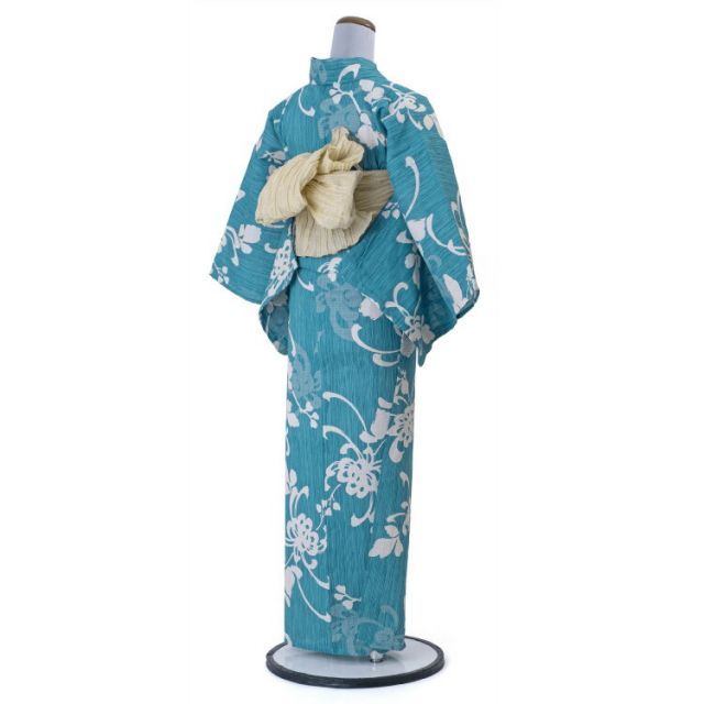 浴衣 レディース 女性用 Scena ターコイズブルー 青 青緑 綿 麻 夏 夏着物 夏小紋 花柄 ゆかた 仕立て上がり 洗える プレタ 販売 単品 yukata-00080 WWW_GLOBALQUALITYIMPORTS_COM
