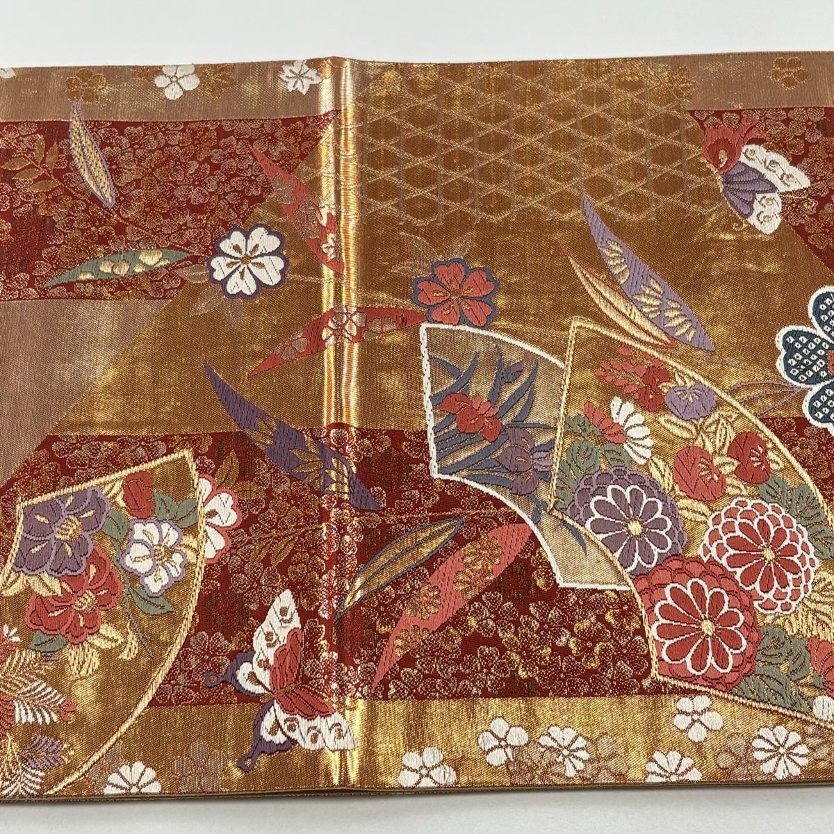 袋帯 秀品 扇面 桜 箔 刺繍 赤茶 六通 正絹の検索結果