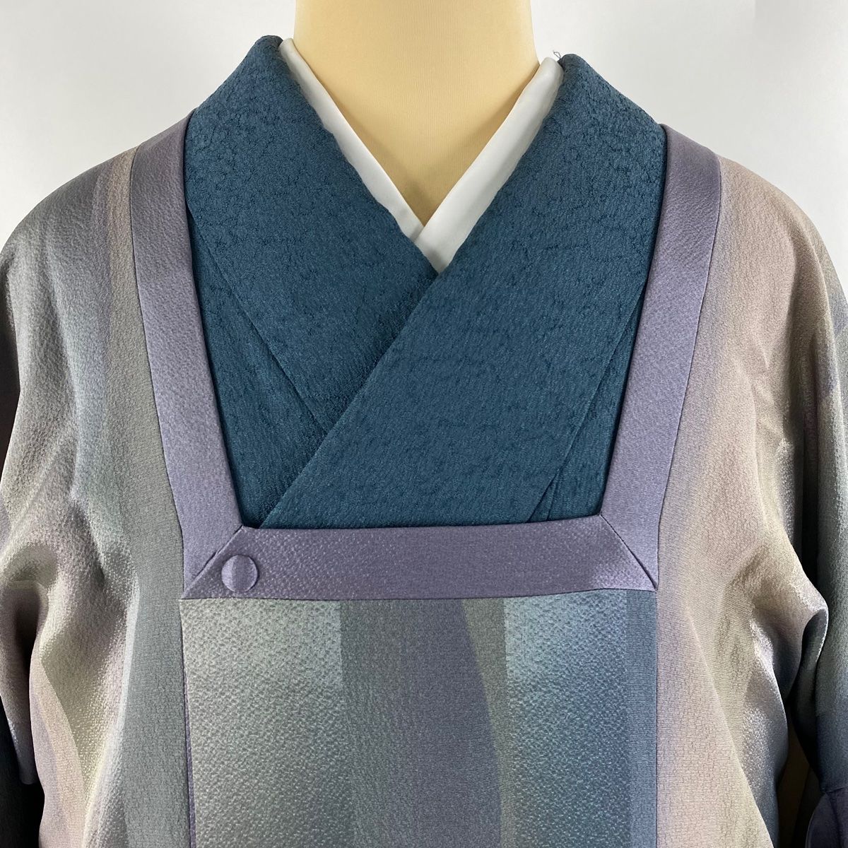 道行 身丈107.5cm 裄丈68cm L 和装コート 角衿 縞 ぼかし 灰緑 正絹の検索結果