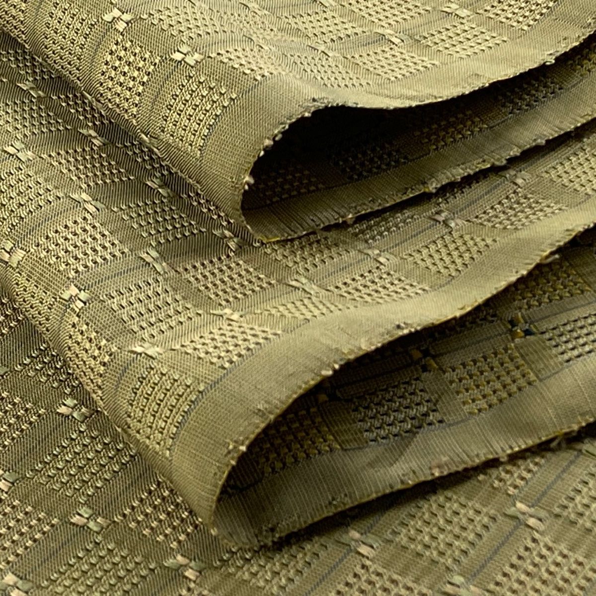 反物 紬 本場琉球 南風原花織 証紙有 格子 茶緑色 正絹 WWW_GLOBALQUALITYIMPORTS_COM