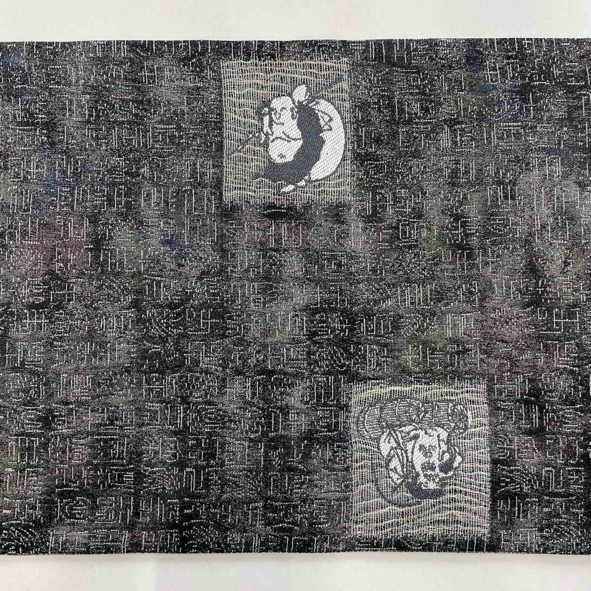 袋帯 秀品 恵比寿 文字文 銀糸 箔 深緑 お太鼓柄 正絹 WWW_GLOBALQUALITYIMPORTS_COM