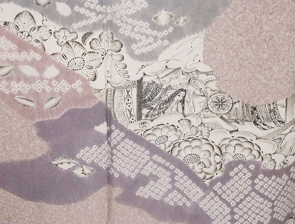 西洞院 辻が花 大脇一心氏作 辻が花訪問着 袷 正絹 ピンク 紫 グレー 緑 絞り 辻が花 源氏物語 Lサイズ ki31109 フォーマル み WWW_GLOBALQUALITYIMPORTS_COM