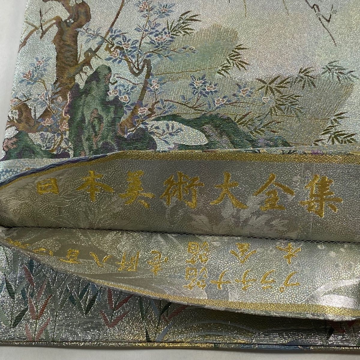 丸帯 日本美術大全集 分析通知書付 草花 鳥 銀糸 箔 青灰色 全通 正絹の検索結果