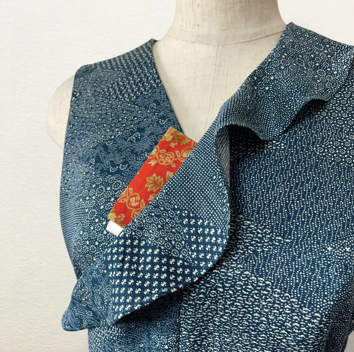 ―― 寄せ柄小紋着物 のカシュクールワンピース ――