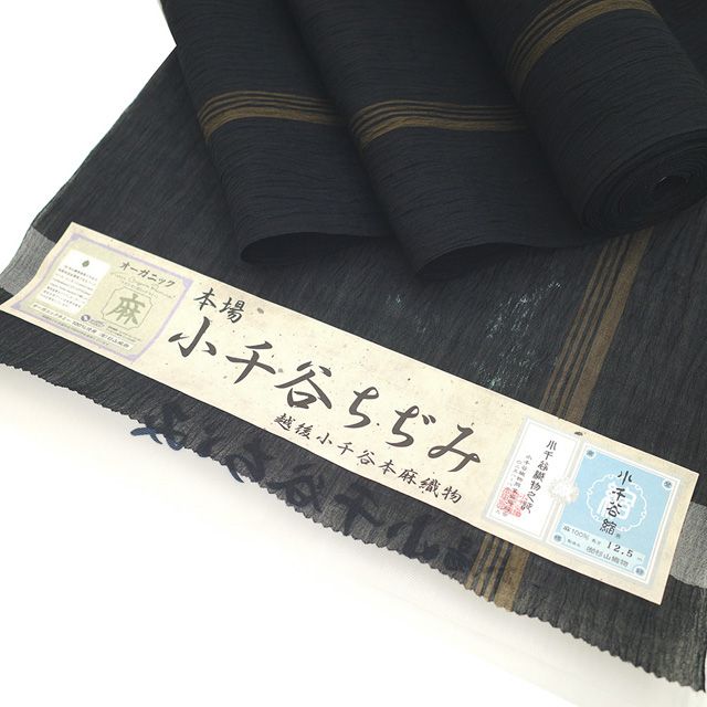 夏物 小千谷ちぢみ 着物 着尺 反物 本場小千谷ちぢみ 本麻 麻 越後 オーガニック 男女兼用 黒 淡黄茶色 縞 ライン カジュアル 夏 小千谷縮 杉山織物 未仕立て みやがわ sb15174 WWW_GLOBALQUALITYIMPORTS_COM