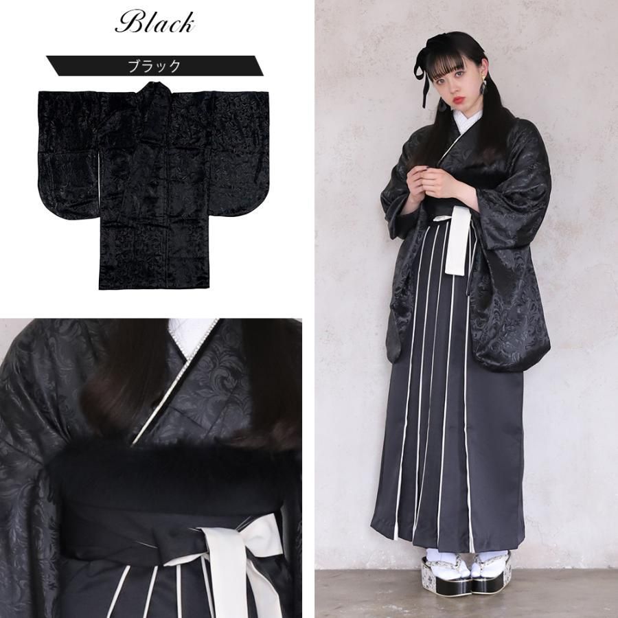 色音 袴セット 長襦袢付き コーディネートセット ダマスク柄 ブラック 切替袴 卒業式 袴 二尺袖 おしゃれ WWW_GLOBALQUALITYIMPORTS_COM