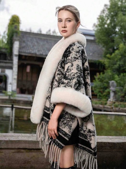 レディース スカーフ 1個 レディース プラスサイズ フェイクファー襟 インク絵柄 ショールカーディガン ホリデーパーティーや日常着に適したファッショナブル 秋冬 WWW_GLOBALQUALITYIMPORTS_COM