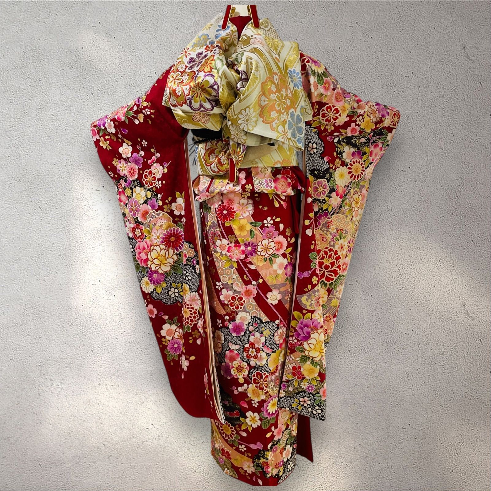 振袖 振袖フルセット 赤系 牡丹 御所車 熨斗柄 古典柄 鹿子模様 吉祥文様 正絹の検索結果