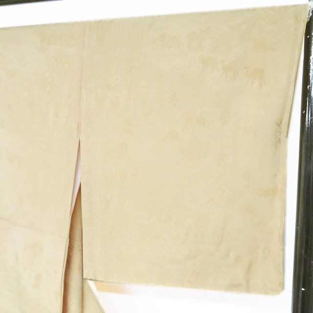 色無地 着物 正絹 袷 紋なし 地模様 シルクロード浪漫 黄櫓染 反端付き 砥粉色 身丈161cm 裄70.5cm M きもの北條 A1281-3の検索結果