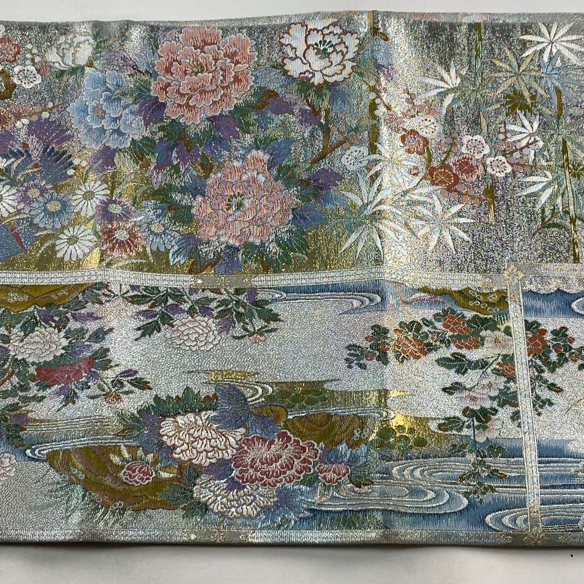 丸帯 日本美術大全集 分析通知書付 草花 鳥 銀糸 箔 青灰色 全通 正絹の検索結果