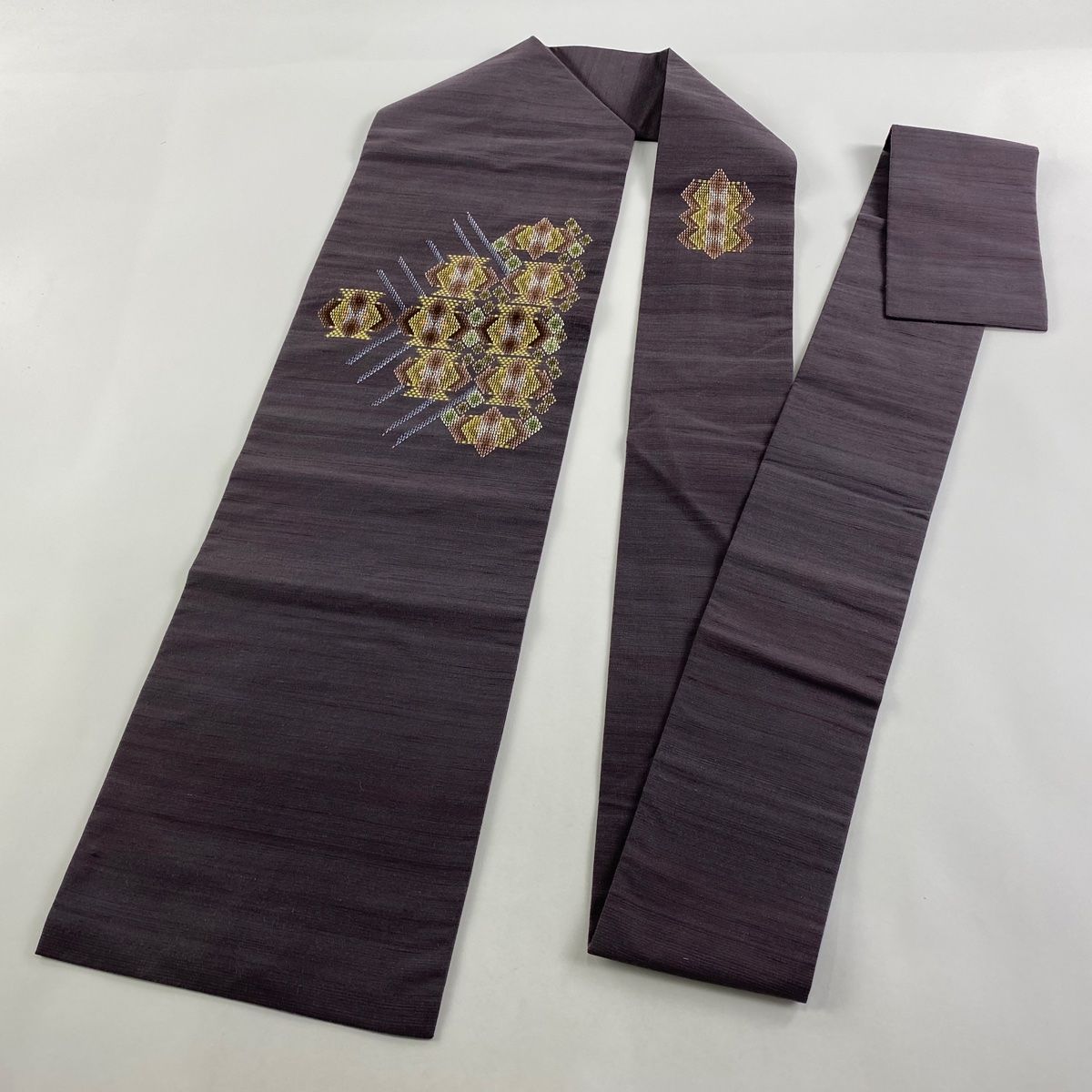 名古屋帯 証紙 幾何学模様 アヤ乃花織 手織草木染 紫 正絹の検索結果