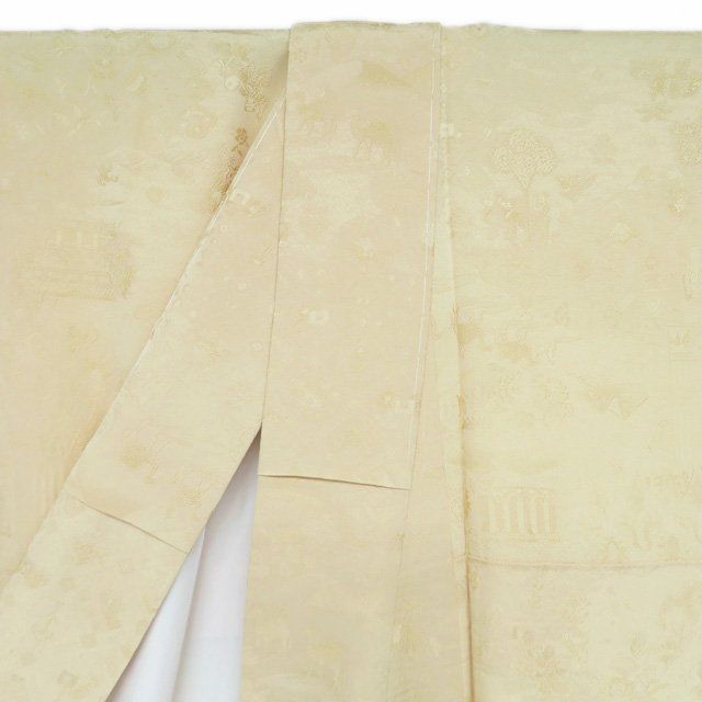 色無地 着物 正絹 袷 紋なし 地模様 シルクロード浪漫 黄櫓染 反端付き 砥粉色 身丈161cm 裄70.5cm M きもの北條 A1281-3の検索結果