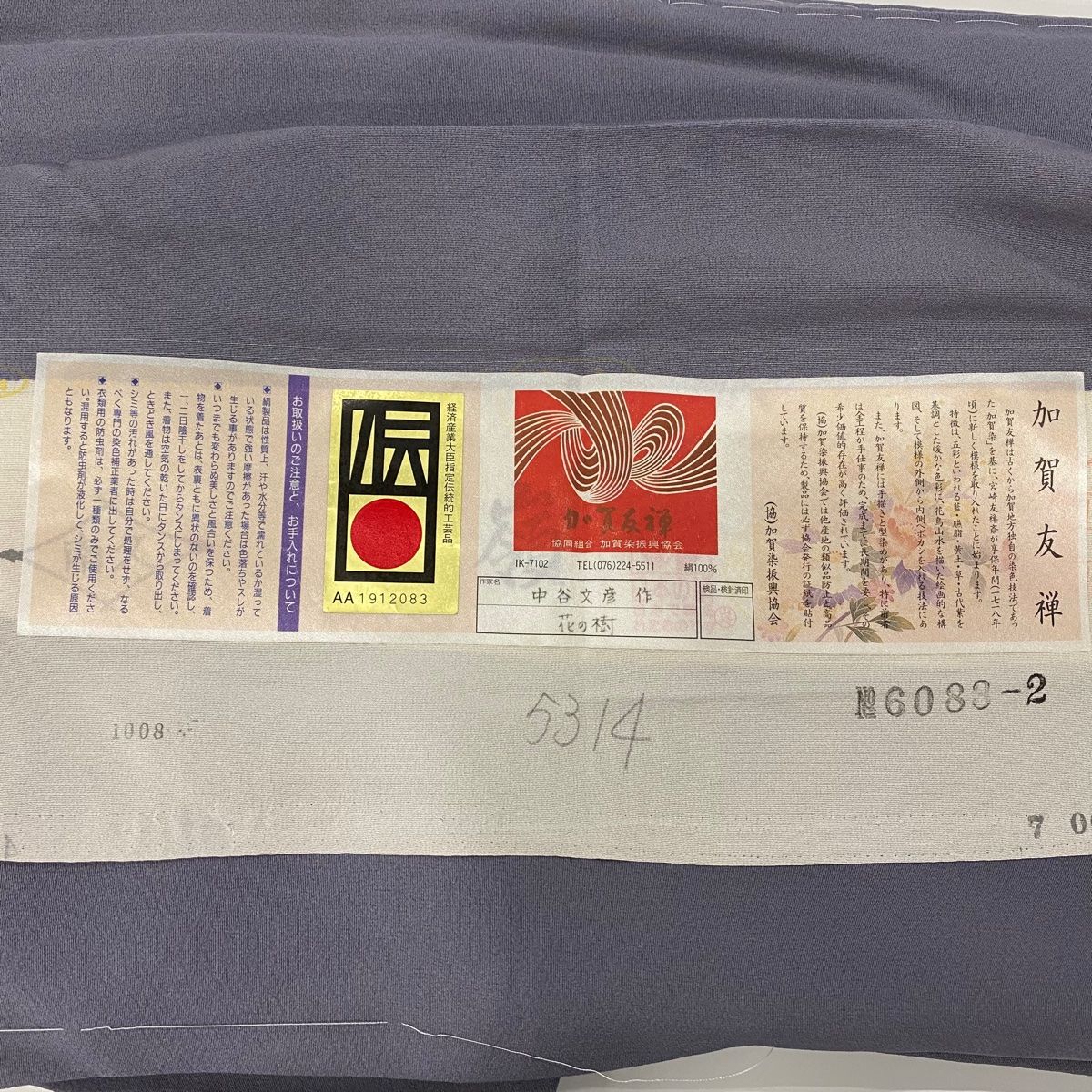 色留袖 身丈155cm 裄丈64.5cm M 袷 加賀友禅 中谷文彦 花の樹 落款 証紙 花扇 桜 灰紫 正絹 WWW_GLOBALQUALITYIMPORTS_COM