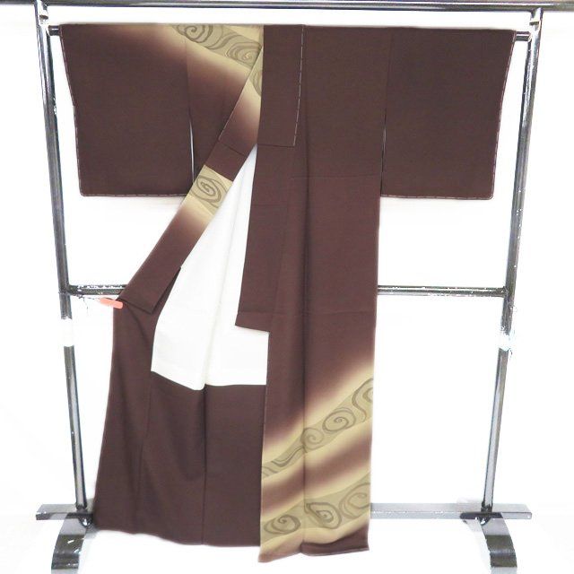 訪問着 着物 正絹 袷 フォーマル 流水模様 暈し 焦茶色 茶系色 身丈167.5cm 裄68cm L トール きもの北條 A1278-4 WWW_GLOBALQUALITYIMPORTS_COM