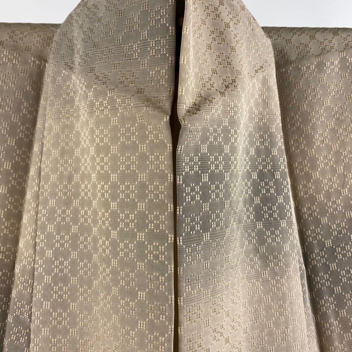付下げ 身丈165cm 裄丈68cm L 袷 紬地 縞 幾何学模様 花織 刺繍 薄茶色 正絹の検索結果
