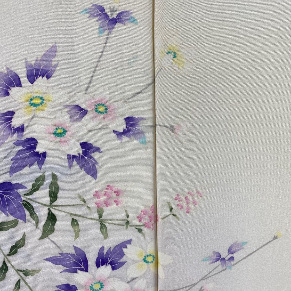 付下げ 身丈170cm 裄丈67.5cm L 袷 小田美知代 加賀友禅 落款 証紙 草花 ぼかし クリーム 正絹 WWW_GLOBALQUALITYIMPORTS_COM