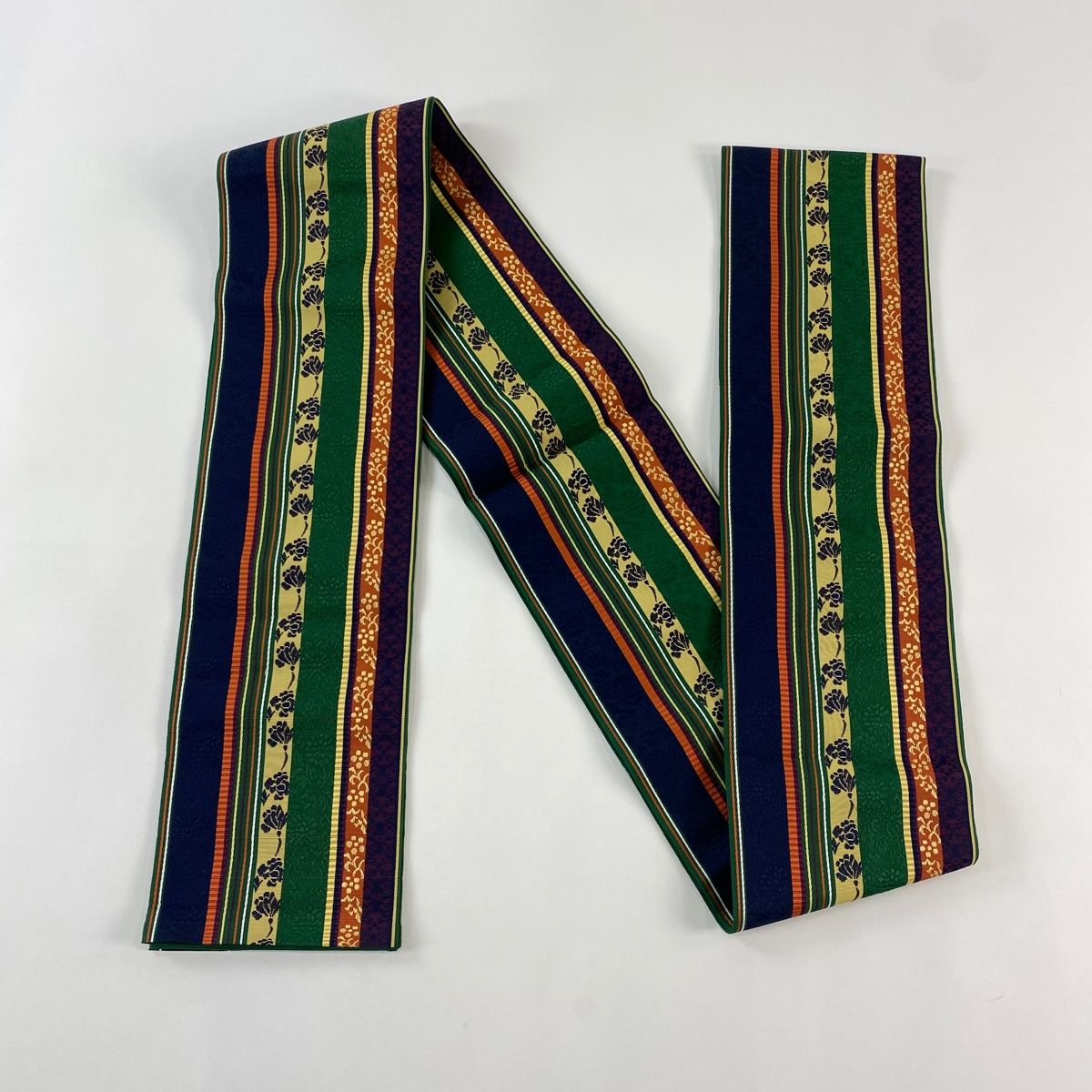 半幅帯 秀品 博多織 証紙 縞 草花 緑 正絹 WWW_GLOBALQUALITYIMPORTS_COM