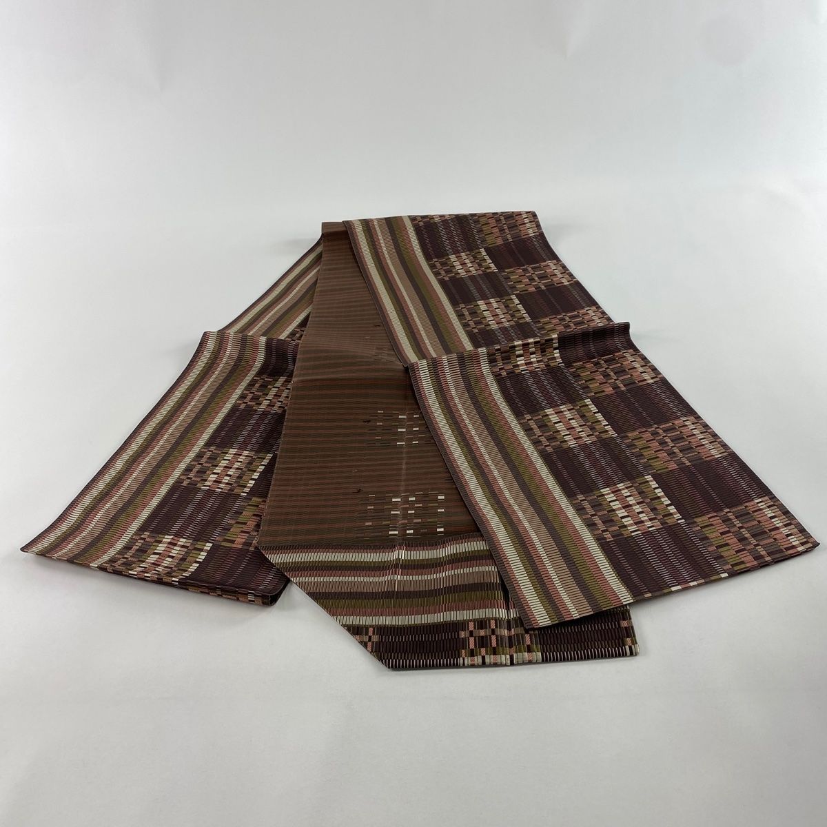 名古屋帯 秀品 八寸名古屋帯 松葉仕立て 幾何学模様 縞 小豆色 正絹の検索結果