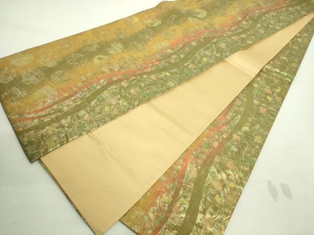平和屋着物 上 石川県指定無形文化財 牛首紬 白山工房 手織り 全通柄袋帯 花丸文 金彩 DZAA8798kh5 WWW_GLOBALQUALITYIMPORTS_COM