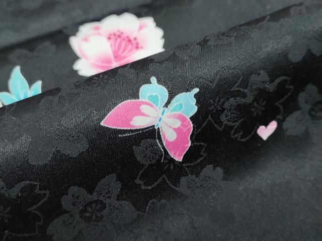 平和屋着物 anan ブランド 小振袖 二尺袖 長襦袢 無双仕立て セット 花蝶文 黒地 金彩 半衿刺繍 洗える着物 DAAW5665ud WWW_GLOBALQUALITYIMPORTS_COM