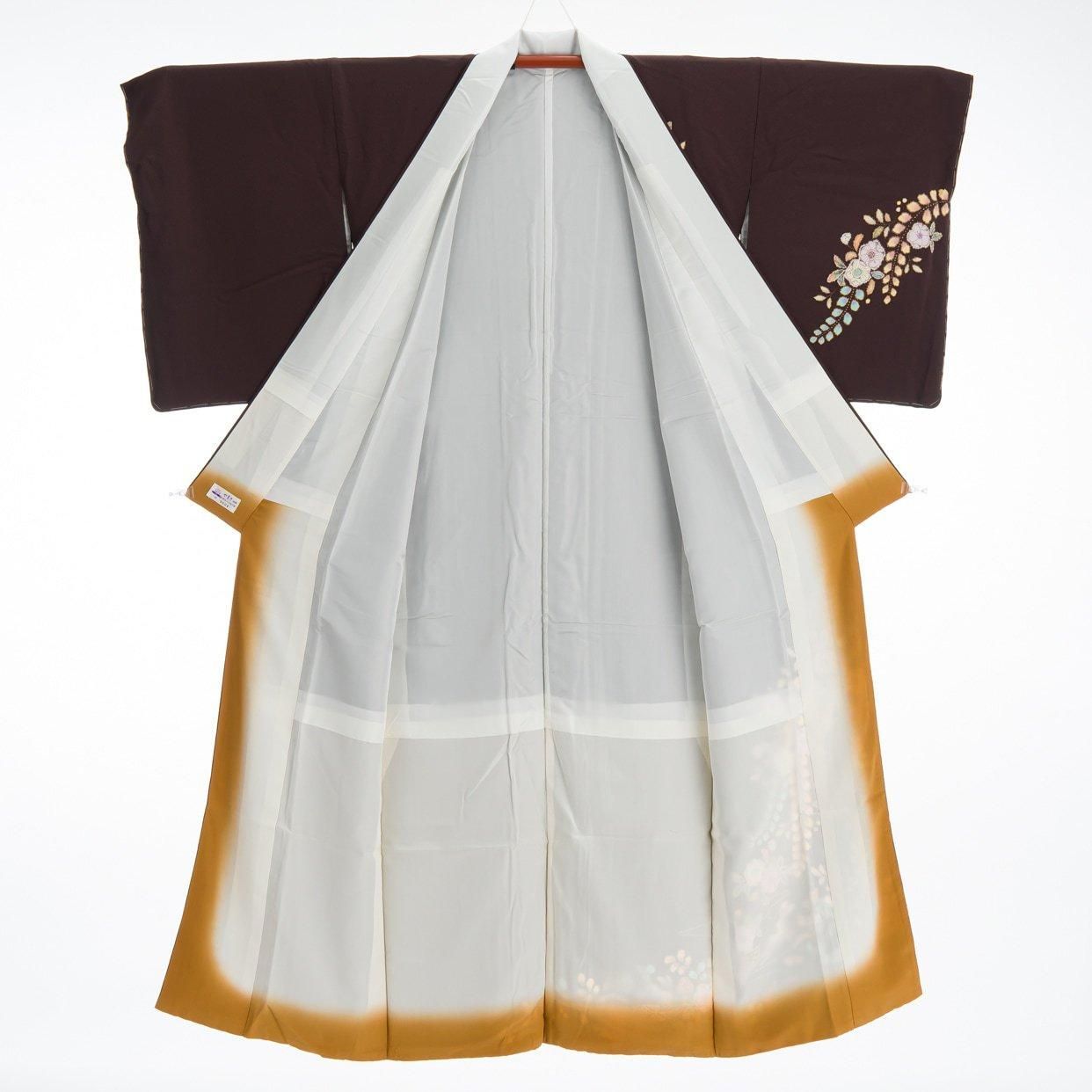 こっくりとした紫鳶の地に流れるように配した藤の花などが浮かび上がる幻想的でエレガントなデザイン。