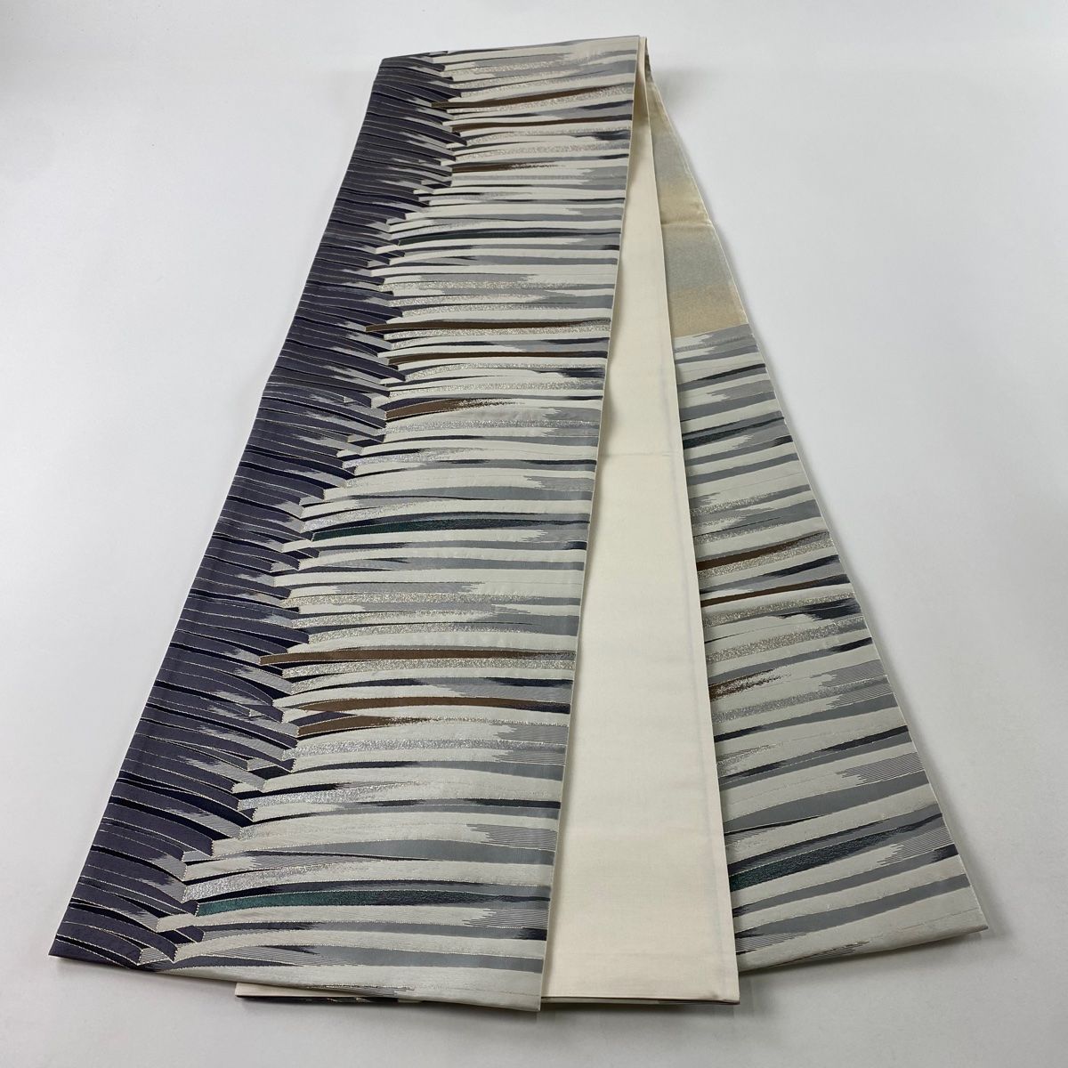 袋帯 秀品 やまと 幾何学模様 銀糸 箔 灰白 六通 正絹 WWW_GLOBALQUALITYIMPORTS_COM