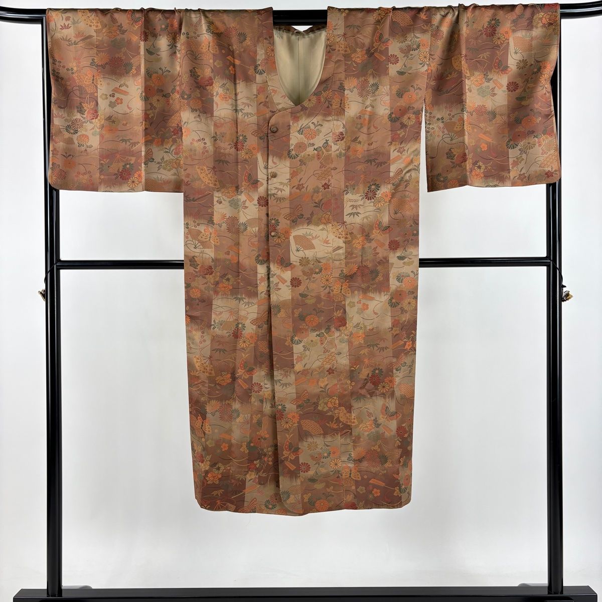 道行 身丈129.5cm 裄丈72cm L 和装コート 千代田衿 扇 草花 赤茶 正絹 WWW_GLOBALQUALITYIMPORTS_COM