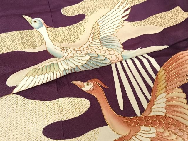 平和屋着物 セミアンティーク 色留袖 中国三大刺繍 汕頭刺繍 スワトウ刺繍 相良刺繍 鳳凰文 金彩 正絹 AABB0215zg WWW_GLOBALQUALITYIMPORTS_COM