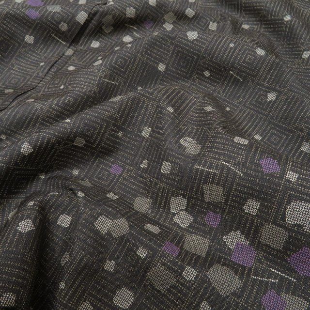 大島紬 着物 正絹 袷 セミフォーマル 幾何学模様 枡模様 黒色 茶系色 多色 身丈168cm 裄67.5cm L トール きもの北條 A1279-6 WWW_GLOBALQUALITYIMPORTS_COM
