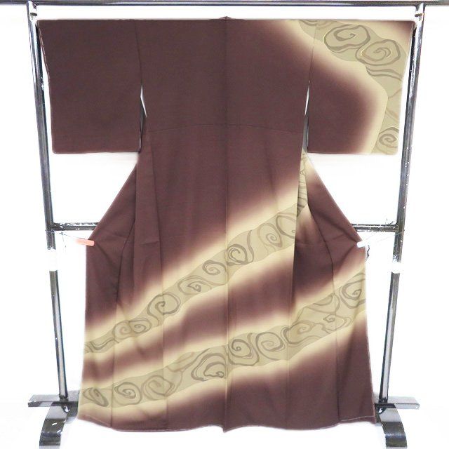 訪問着 着物 正絹 袷 フォーマル 流水模様 暈し 焦茶色 茶系色 身丈167.5cm 裄68cm L トール きもの北條 A1278-4 WWW_GLOBALQUALITYIMPORTS_COM