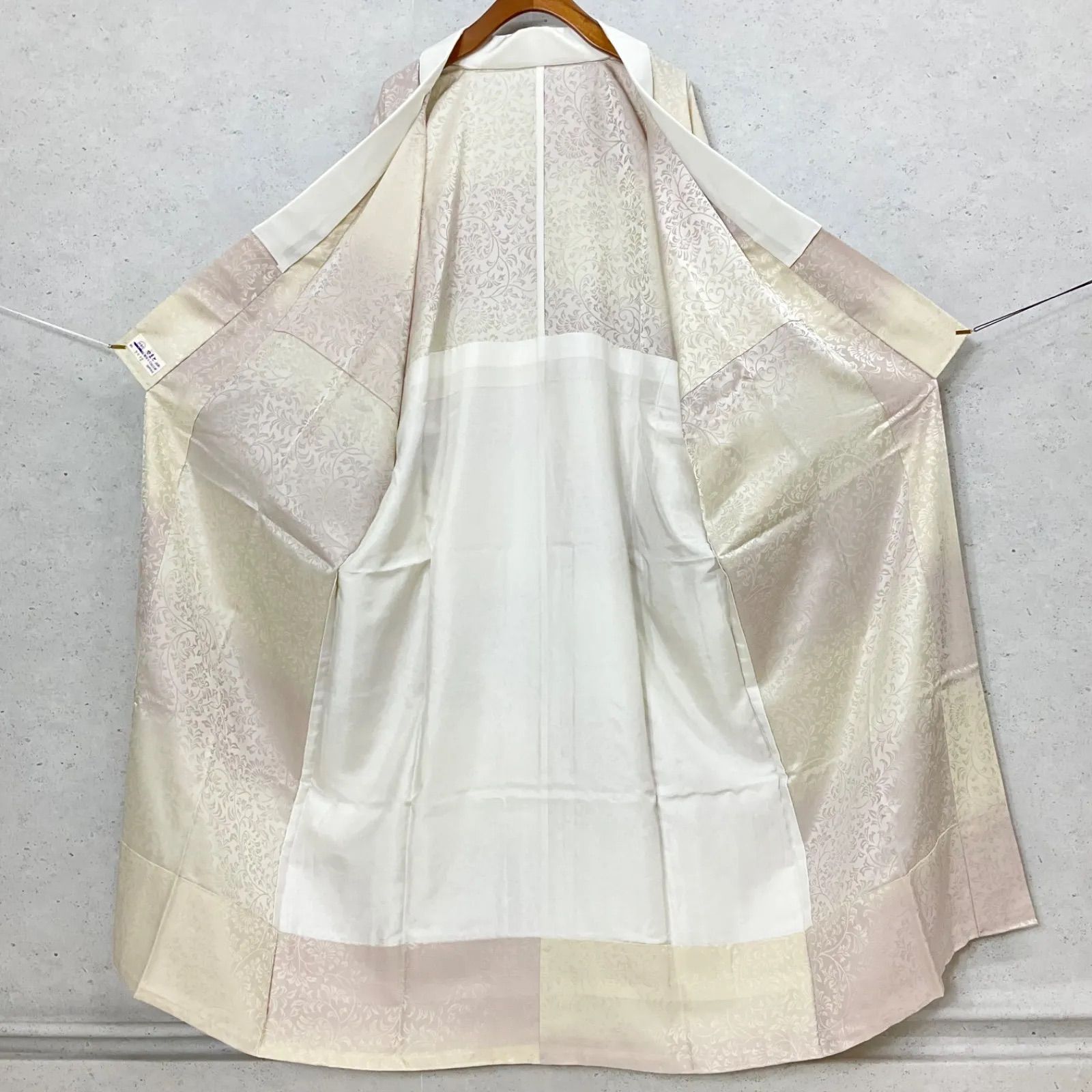 kimono one 同然 特選 西陣先染襦袢 長襦袢 仕付け糸付き ガード加工 やまと誂製 余り布付 単衣 居敷当て付き 白半衿付 薄紫 クリーム 裄70肩丈133 小紋紬附下訪問着留袖袷単衣夏着物 K1150 WWW_GLOBALQUALITYIMPORTS_COM