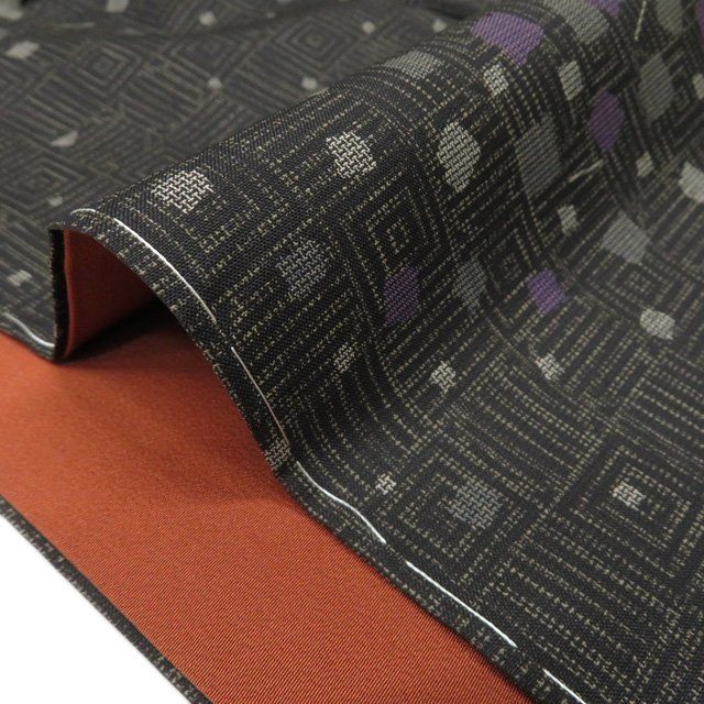 大島紬 着物 正絹 袷 セミフォーマル 幾何学模様 枡模様 黒色 茶系色 多色 身丈168cm 裄67.5cm L トール きもの北條 A1279-6 WWW_GLOBALQUALITYIMPORTS_COM