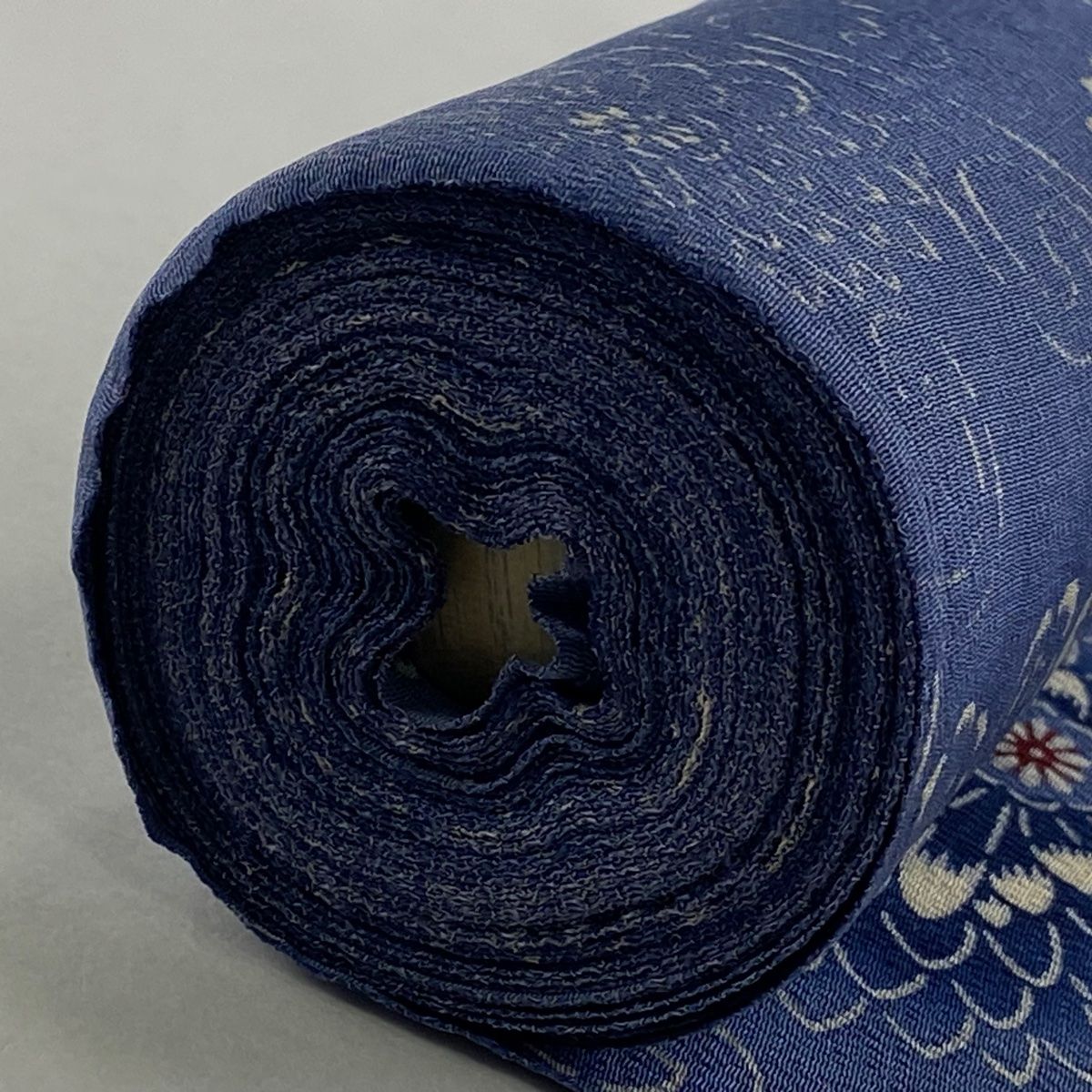 反物 秀品 小紋 落款有 草木染 菊唐草 縮緬 藍色 正絹 WWW_GLOBALQUALITYIMPORTS_COM