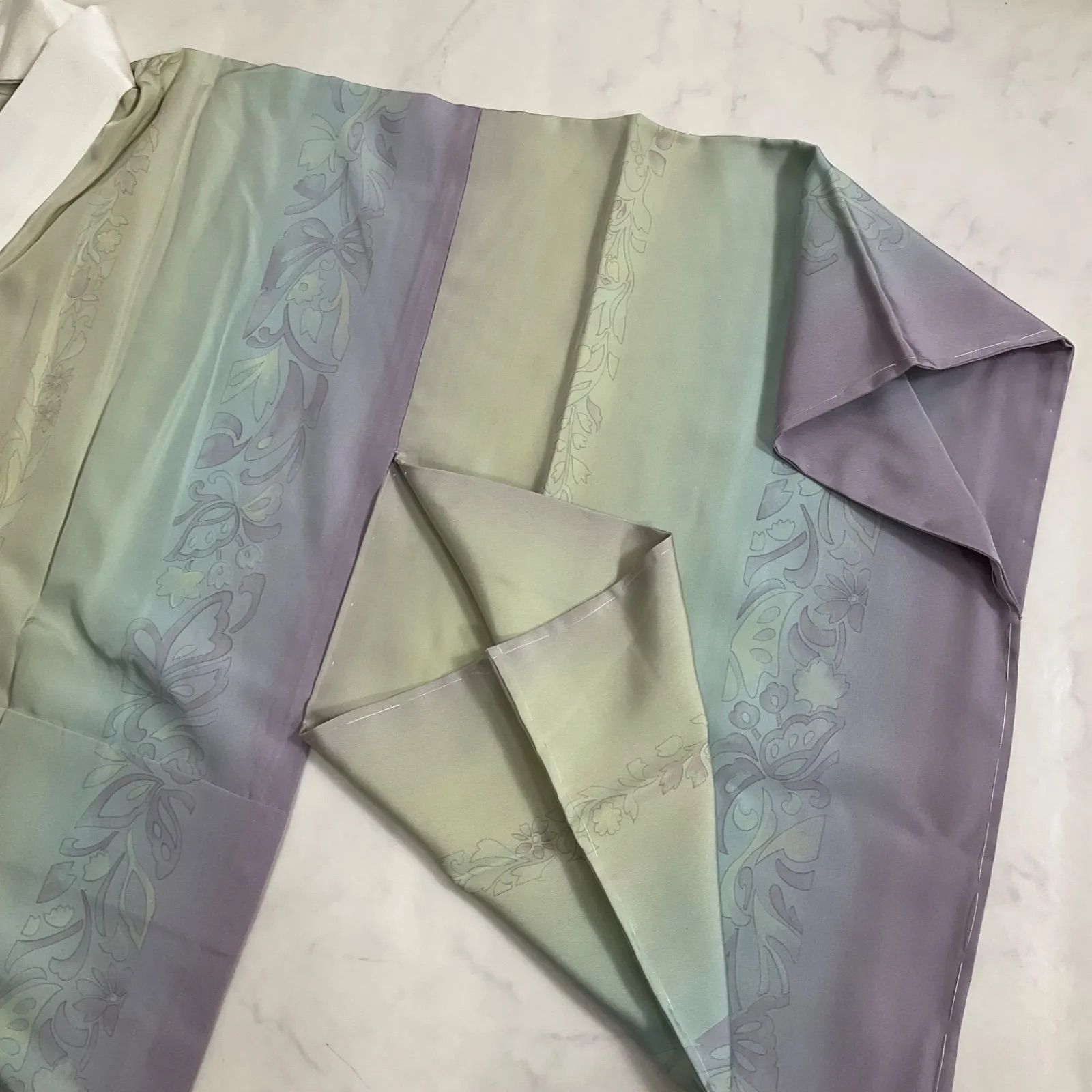 kimono one 同然 長襦袢 素敵な暈し染 正絹 仕付け糸付き 白半衿付 居敷当て付き 単衣 袖無双 裄長 裄66cm肩丈126cm 小紋紬附下訪問着留袖袷単衣夏着物 K1226 WWW_GLOBALQUALITYIMPORTS_COM