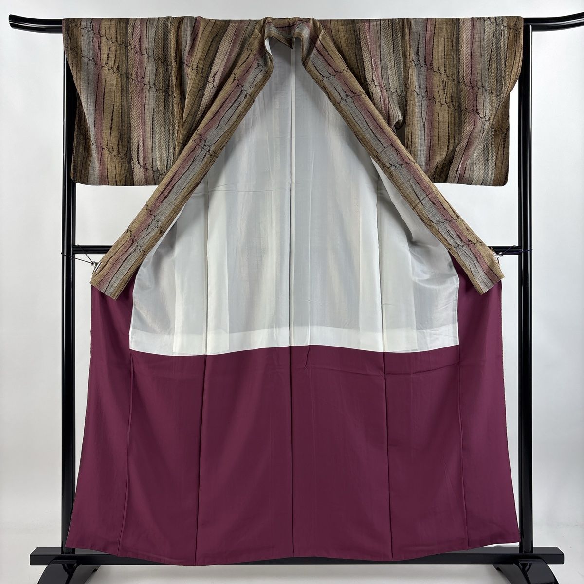 小紋 身丈158.5cm 裄丈65.5cm M 袷 やまと 斜縞 幾何学模様 絞り 茶色 正絹 秀品の検索結果