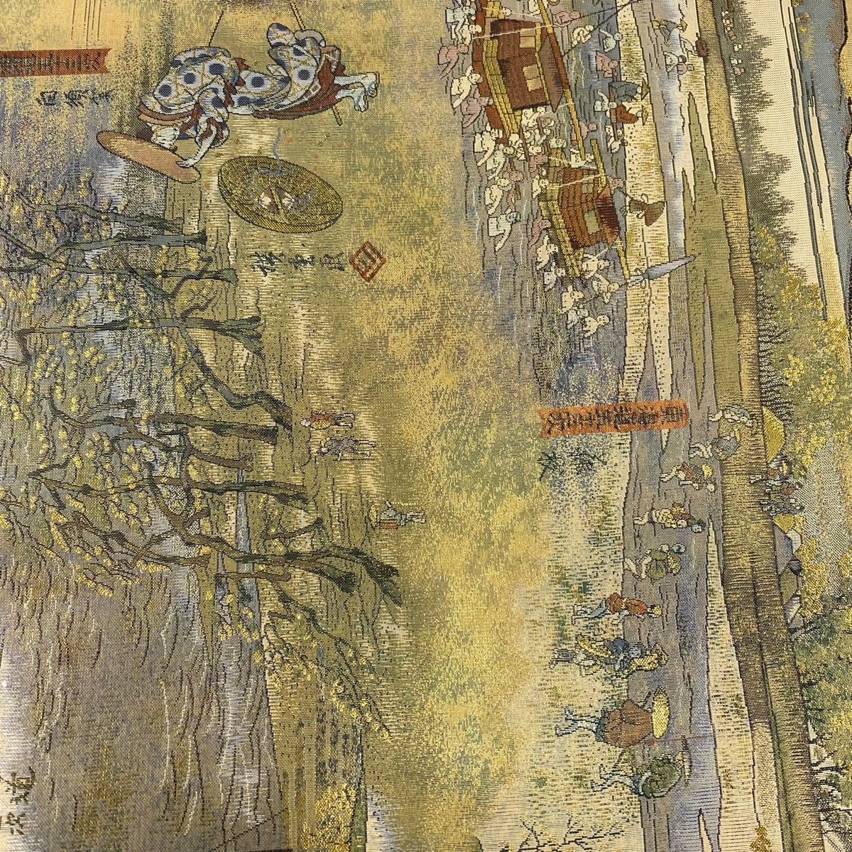 袋帯 秀品 廣重 風景 東海道五十三次 箔 黄土色 お太鼓柄 正絹 WWW_GLOBALQUALITYIMPORTS_COM