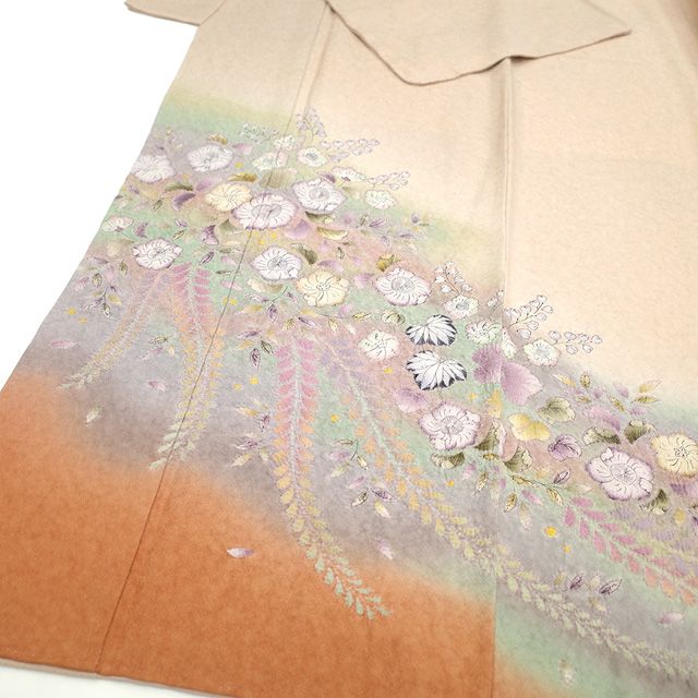 訪問着 着物 フォーマル 正絹 袷 作家物 手染め 辻が花 絞り シェルピンク色 ぼかし 春 秋 冬 着物 ピンクベージュ 上質 仕立て上がり 身丈169 裄丈69 L~TLサイズ トールサイズ LL 2L みやがわ sb16372 WWW_GLOBALQUALITYIMPORTS_COM