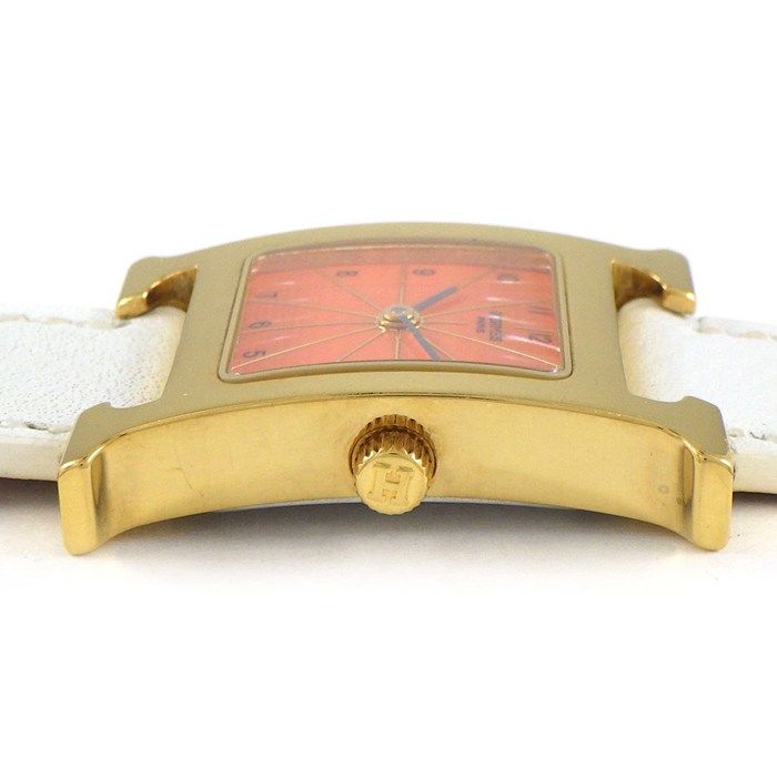 エルメス HERMES 腕時計 Hウォッチ HH1.201 スクエア オレンジ文字盤 GP SS ホワイト ヴォー エプソン レザーベルト クオーツアナログ WWW_GLOBALQUALITYIMPORTS_COM