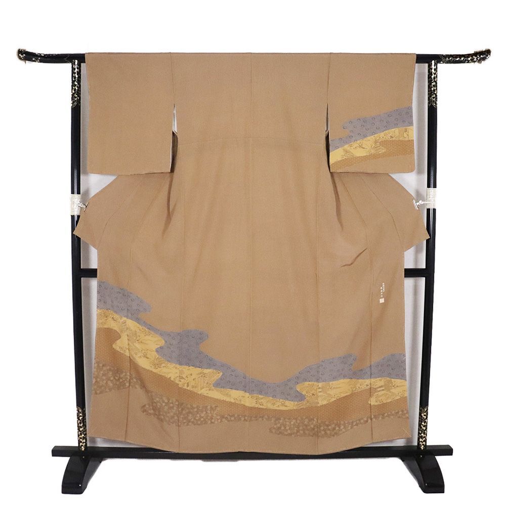 廣瀬染工房 四代目 廣瀬陽訪氏作 特撰江戸小紋 訪問着 袷 正絹 茶 紺 ベージュ 万筋 庭風景 七宝文 7号 Mサイズ ki31096 みの検索結果