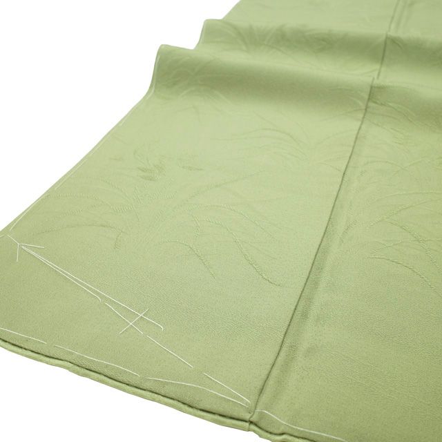 【新古品】 すごい値! 色無地 付下げ 着物 未使用 正絹 袷 一つ紋 五三桐 抹茶 地紋 草花 セミフォーマル 新古品 仕立て上がり 身丈168 裄丈69 Lサイズ 春 秋 冬 未使用 着物 色無地 付下げ 付け下げ 黄緑 お茶会 七五三 入学式 卒業式 など たとう紙付き 送料無料 30代 40代 50代 ~ 販売 購入 リサイクル すごいね みやがわ nek01514