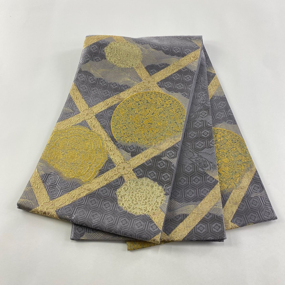 袋帯 落款 山口克爾監修 格天井葡萄鏡文 草花 金銀糸 箔 灰紫 お太鼓柄 正絹の検索結果