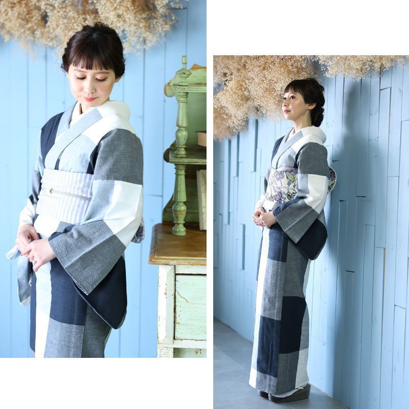 お仕立て上がり 阿波しじら織り 木綿 着物 夏着物 浴衣 コットン着物 単衣きもの 藍色の濃淡大格子 No.H50 10009497 WWW_GLOBALQUALITYIMPORTS_COM