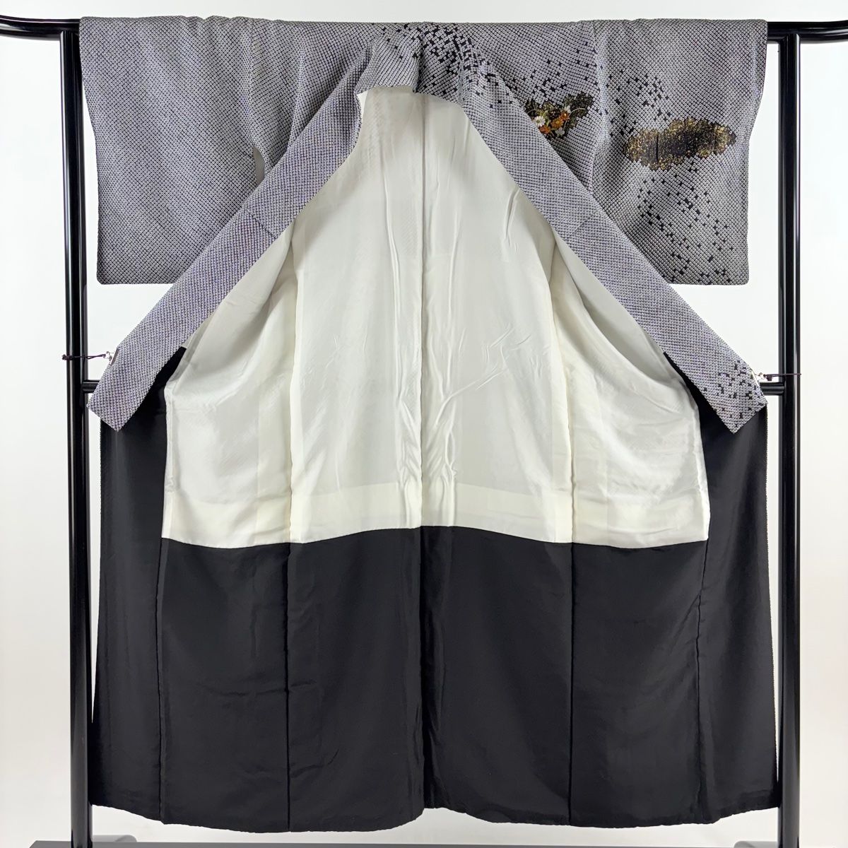 付下げ 身丈153.5cm 裄丈62cm S 袷 霞 草花 絞り 刺繍 黒灰 正絹の検索結果