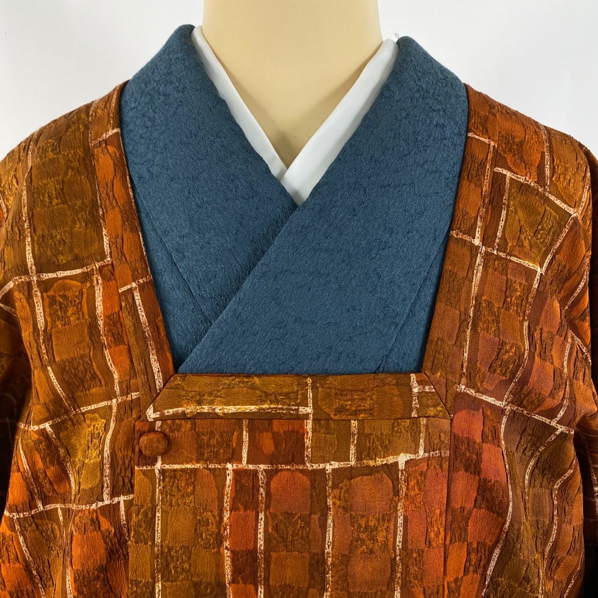 道行 身丈99cm 裄丈69cm L 和装コート 角衿 幾何学模様 市松 赤茶 正絹 秀品 WWW_GLOBALQUALITYIMPORTS_COM