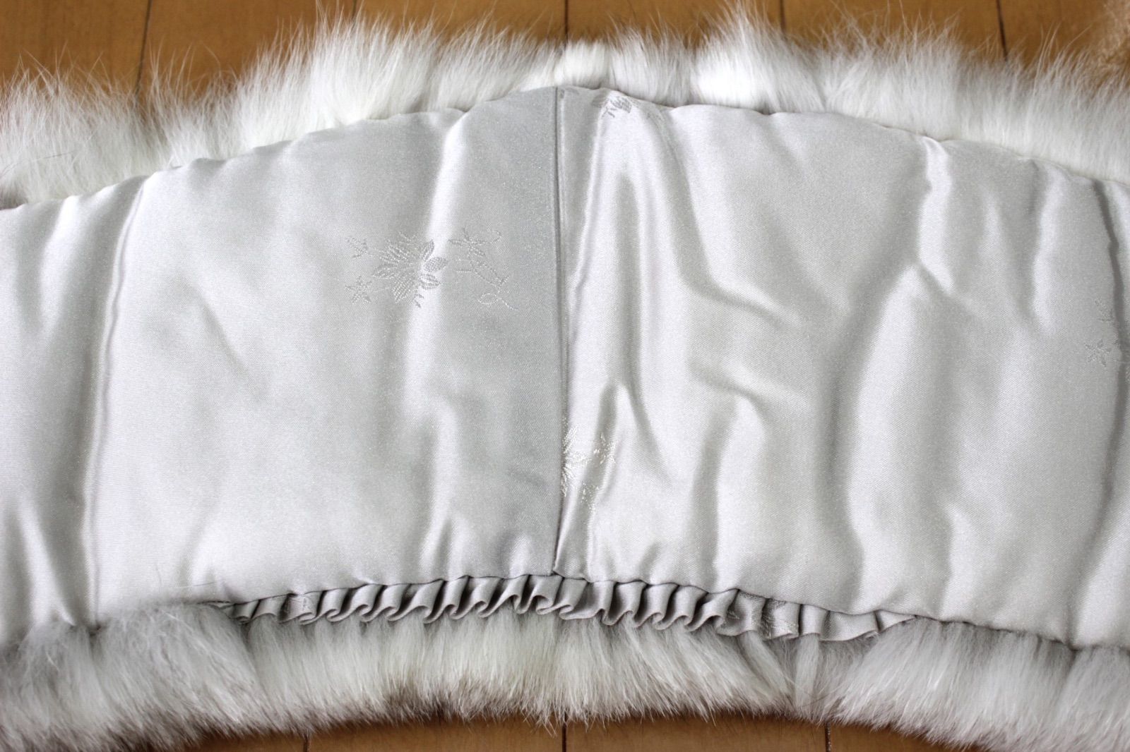 大切な成人式や,卒業式,パーティーなどの装いに,美しいホワイト系の毛皮製マフラーで、女性らしい上品さを演出します。振袖,卒業式の袴,結婚式の着物などにもお使いいただけます。