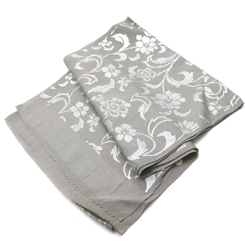 帯揚げ 振袖用 正絹 縮緬 成人式 晴れ着 グレー 花唐草 煌びやか 長さ166cm 幅28cm 着付け小物 和装小物 振袖小物 WWW_GLOBALQUALITYIMPORTS_COM