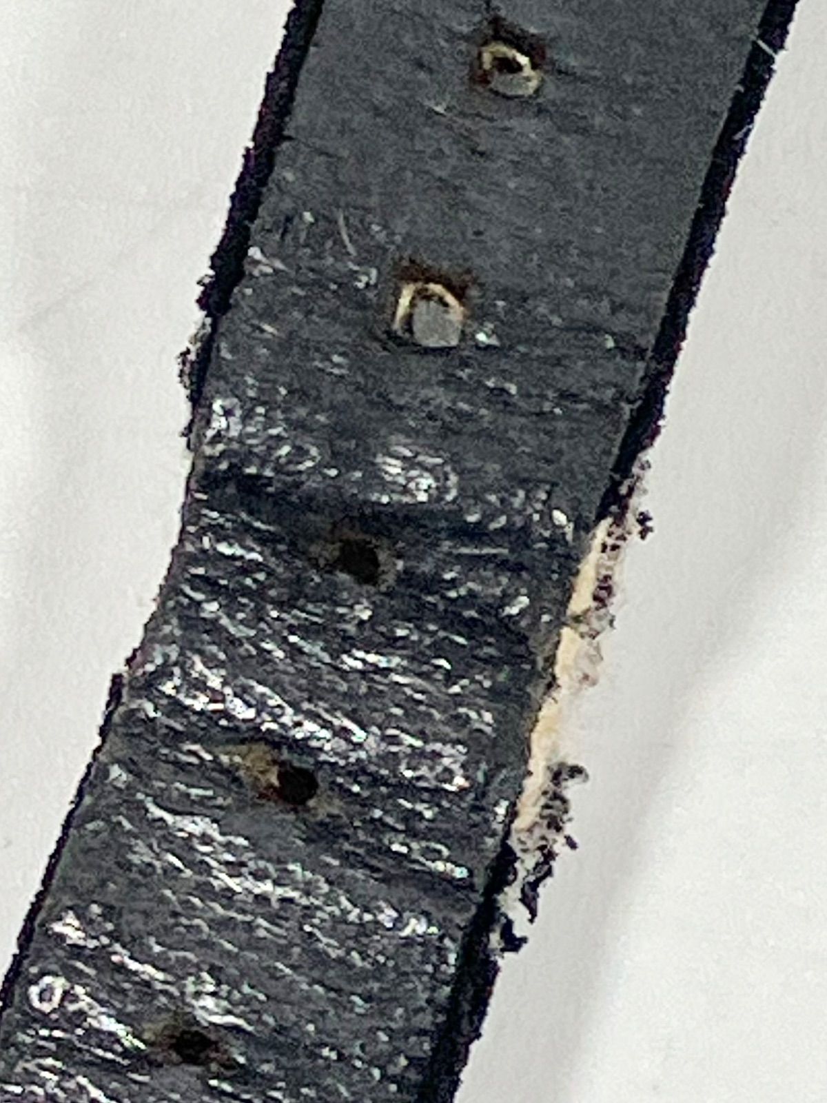 文字盤等に傷や汚れは見られませんでしたが、ベルト部分の生地剥がれが見られます。