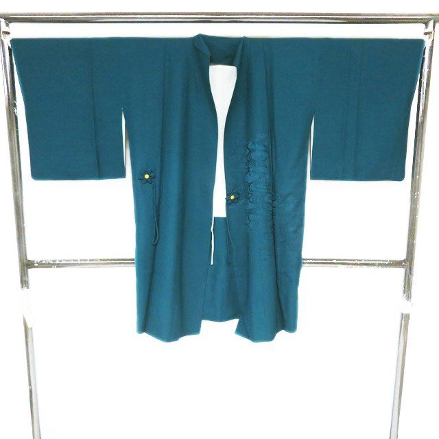 コート 道中着 着物 正絹 地模様 流水模様 深緑色 身丈101cm 裄67cm きもの北條 A1282-3 WWW_GLOBALQUALITYIMPORTS_COM