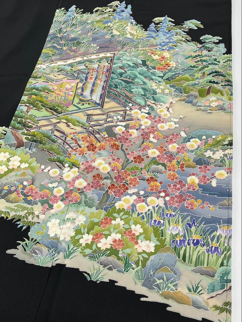 本加賀友禅 谷崎善治 落款入 宴の庭 黒留袖 比翼仕立て 正絹 X314の検索結果