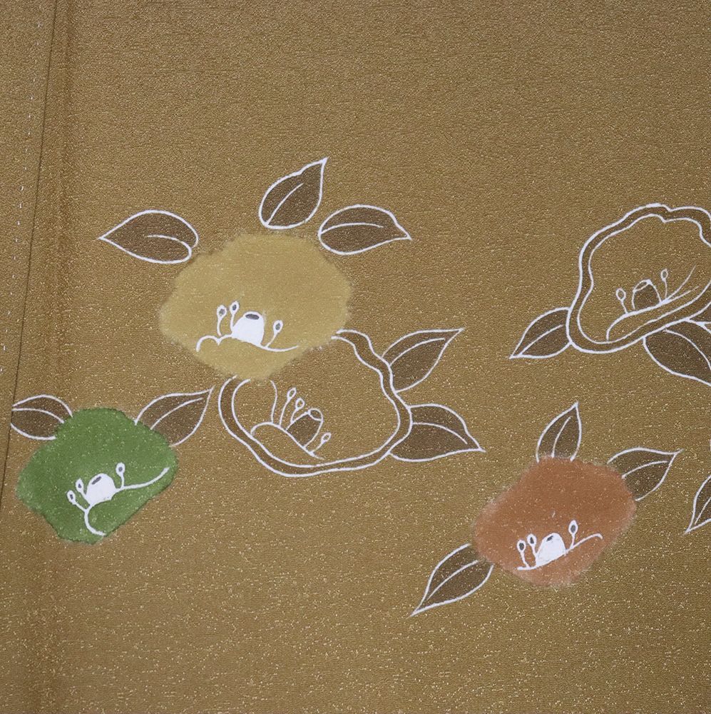 訪問着 袷 正絹 黄土色 赤茶 金箔 暈し 椿 SSサイズ ki31151 レディース シルク ギフト フォーマル 30代 40代 50代 み WWW_GLOBALQUALITYIMPORTS_COM